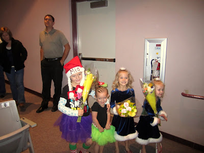 Petey was such a ham and did really well but kind of got side tracked and kept staring at the other girls. :) She's only 3 so we expected that. But as you can see, she was great at singing the words and she did really great waving and smiling when she walked off the stage. :)